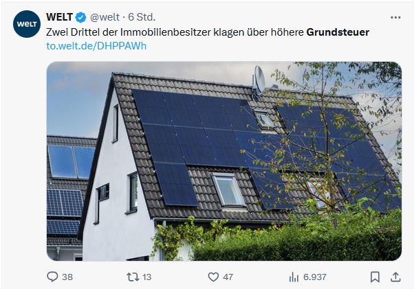 Auf X werden Steuerbescheide veröffentlicht, wonach sich bei manchen die Grundsteuer um 700% erhöht haben soll.